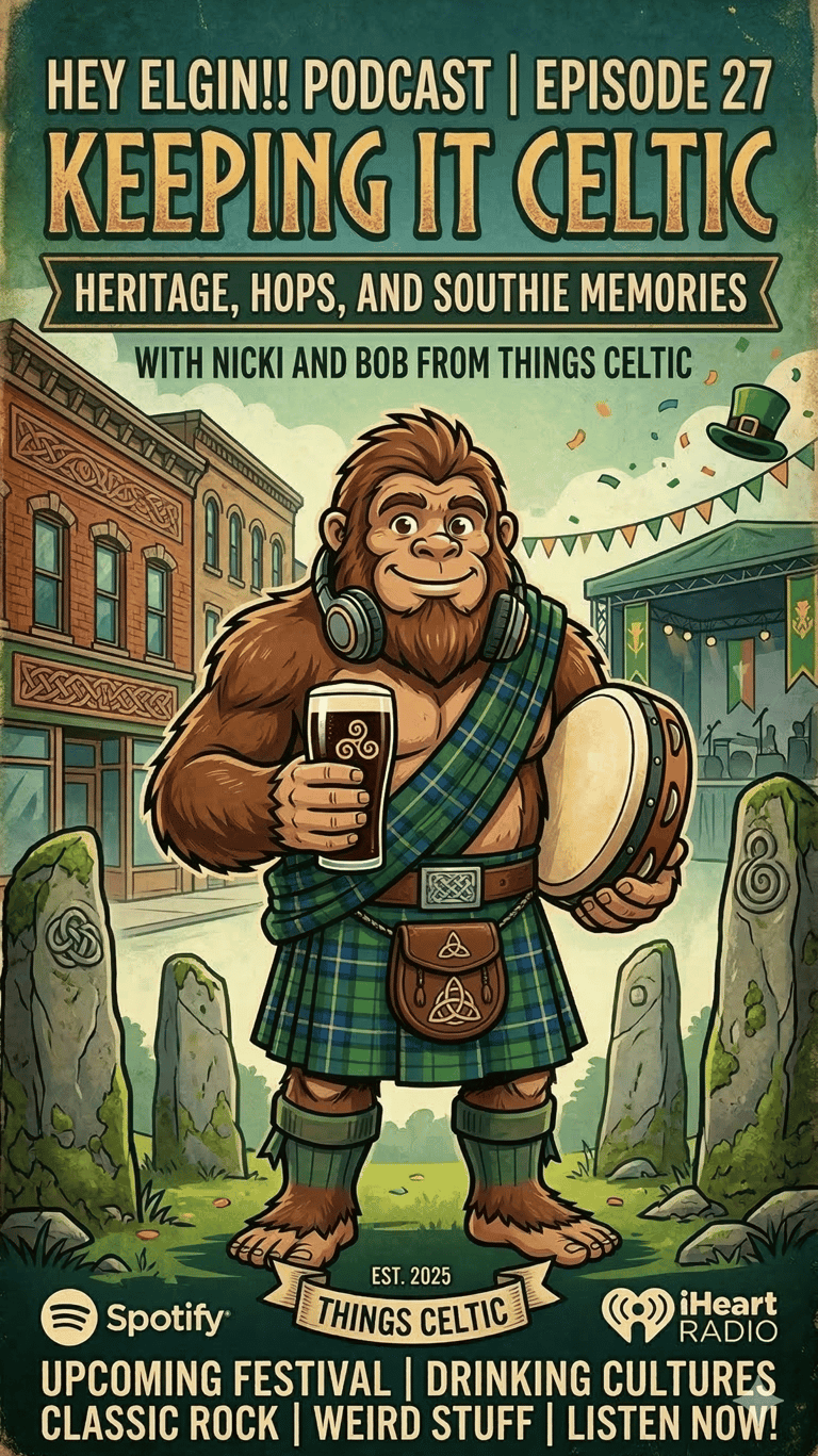 We are officially in the post-25 era of Hey Elgin!!, and we're kicking off Episode 27 with a wee bit of Celtic flair! This week, we sit down with Nicki and Bob, the passionate new owners of the beloved local shop, Things Celtic. They take us behind the counter to talk about the store's historic roots and how they are carefully preserving its rich legacy in the community while gearing up for an exciting upcoming festival.
